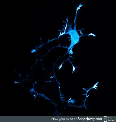 Growth of an embryonic neuron. This rat neuron is deciding which of its processes will become dendrites and which will